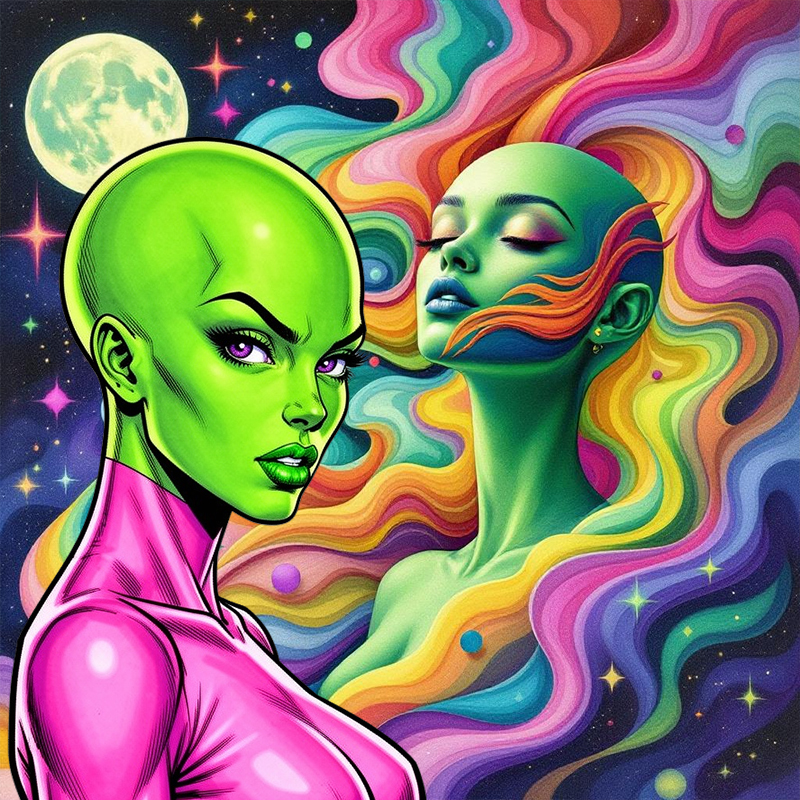 Standing tall at 6 feet 2 inches with vibrant green skin and a solid weight of 195 pounds, I am here on earth, fueled by my radiant purple eyes and the warrior spirit of the moon people. I am on a quest to find the inventor who discovered the moon war and seek his help in trying to stop the dying. i am a princess and warrior to my people.I am Maza of the Moon!